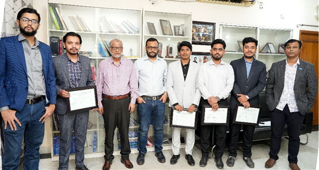 Ashikur Rahman (NITER) completed his research at Denitex Limited on ozone-caused discoloration in cotton-based fabrics, analyzing the effects on 100% cotton, cotton-spandex and recycled cotton fabrics and identifying chemical solutions to mitigate the issue.Meanwhile, Md Abdul Ohab Shams (BUTEX) earned his certification in Fabric Technology through a project at South West Composite Ltd. titled “A Practical Method for Calibrating Knit Dyeing Machine’s Main Vessel Water Scale Through Calibrated Side Tanks.” The project focused on improving machine calibration accuracy to ensure consistency in knit dyeing operations.